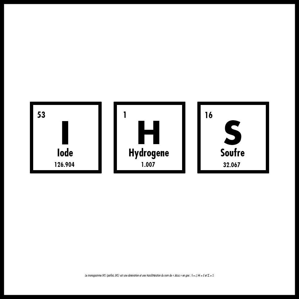 I H S sous forme d'éléments issus du tableau périodique.